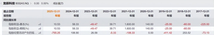 龙辰科技的主营产品是电容器用聚丙烯薄膜,广泛应用于电子、家电、通讯等领域,下游客户包括了赛福电子、胜业电气(920128.BJ)等,在近三年里,龙辰科技业绩波动挺大的,2024年和2025年盈利都是大幅增长、增幅分别达到59.39%和23.43%,但前一年也即2023年却是同比下滑了37.94%。