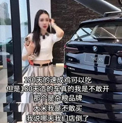 “180 天的速成鸡可以吃,180 天造的车我不敢开”“看到开这个品牌的车主,要一脚油门追上去看看长相”…… 这些充满偏见、嘲讽甚至冒犯的言论,出自一位宝马 4S 店销售人员之口。在公开直播中,她以 “杂粮品牌”“大米汽车” 等戏谑称呼贬低小米汽车,面对质疑仍强硬回怼,毫无收敛之意。