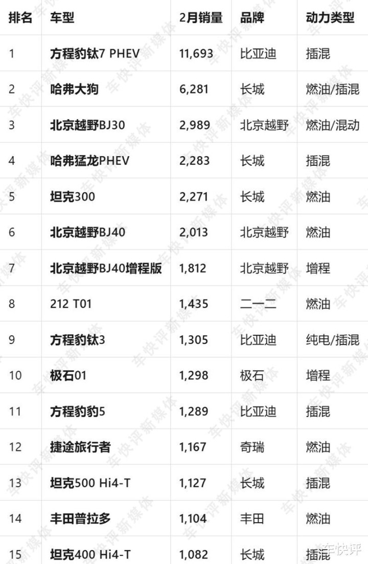 从以上销量数据不难看出,长城、比亚迪和奇瑞三家车企,在国内方盒子SUV市场已经形成三足鼎立的局面。本来以为2026年,方盒子SUV市场依然会延续2025年的格局。不过看了最新公布的2月方盒子SUV销量数据才发现,方盒子SUV市场格局恐要生变。